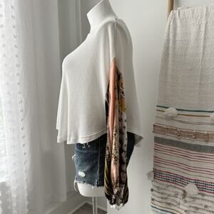 We The Free Blossom White Long Printed Balloon Sleeves Boho Oversized Top XS