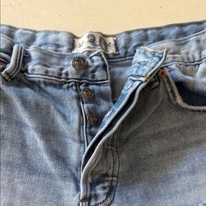 Trendy blue jean shorts with frayed edges. Perfect for casual wear. The front closure are button closures (sz 30)