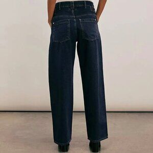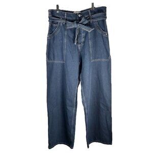 NWT We The Free Blue Jay Belted Boyfriend Jean Size 26 Dark Wide Leg Relaxed Fit Drapy