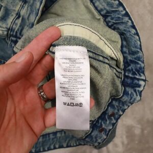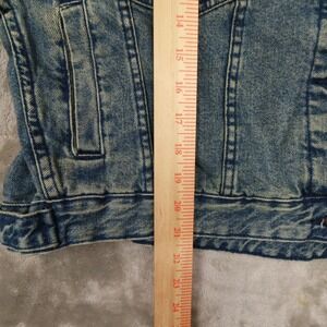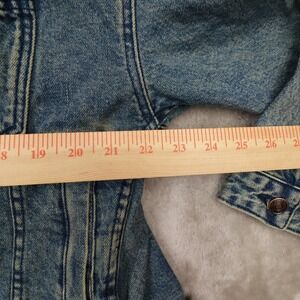 Classic denim jacket. Button-up front. Dual chest pockets.