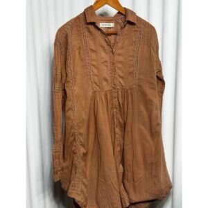 The kind of dress that feels like Sedona at sunset—earthy, free, and effortless. We The Free boho button-front in burnt sienna with crochet trim and peasant sleeves. Size small.
