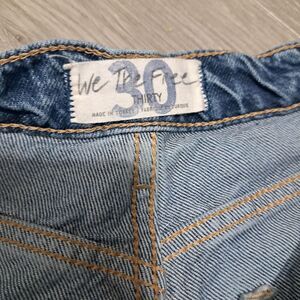 We The Free Boho Chic Old West Wide Leg Frayed Raw Hem Jeans Sz 30 Light Wash Blue