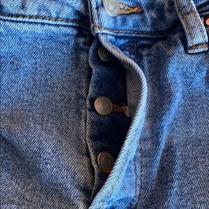 We The Free Denim Distressed Button Fly Cutoff Raw Hem Shorts, size 29. Please note; has signs of wear.
