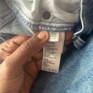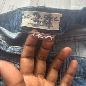 We The Free CRVY High Rise Button Fly Jeans 34 Distressed Raw Hem straight leg