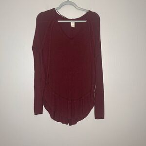 Size XS. Great condition. Burgundy color. Get that "cool girl" style with the Free People Catalina Plum Purple Long Sleeve Thermal Top! This relaxed top, composed of soft thermal and ribbed knit fabric, makes the perfect foundation for creative layering with its wide neckline, long sleeves, and unique seaming throughout the slouchy-cool bodice. Ribbed hems and cuffs, plus an unfinished trim, tops off the laid-back look.