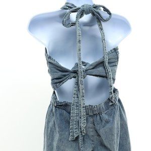 We The Free C'est La Vie Halter Overall Denim Jumpsuit Romper Size M