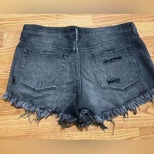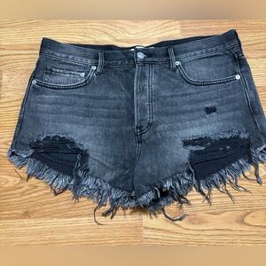 Stylish charcoal jean shorts with frayed hem. Perfect for a casual, trendy look. 665