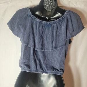 We The Free XS Charcoal Off The Shoulder Crop Top Ruffle Button Down Linen