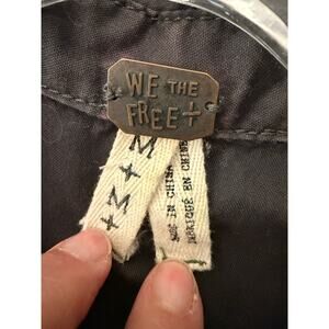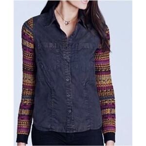 We The Free Charcoal Shirt W Multi-Colored Knit Sleeves Medium Distressed