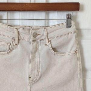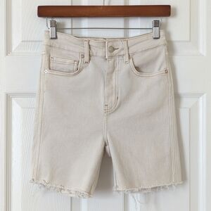 We The Free Classic High Rise Mid Length Raw Hem Denim Jean Shorts Beige 28