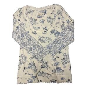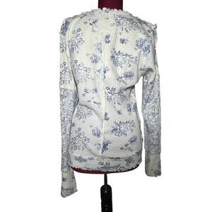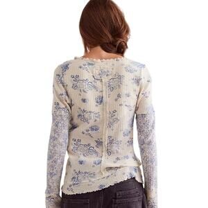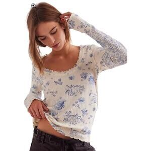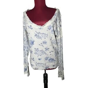 We The Free Clover Printed Thermal Ivory Combo Blue Flowers Long Sleeve Large