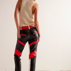 #WeTheFree #FreePeople #VeganLeather #MotoStyle #ColorblockPants #TrendyFashion #StreetStyle #EdgyLook #StatementPiece