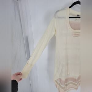 We The Free Cream Stripe Thermal Waffleknit Long Sleeve High Low Tunic L