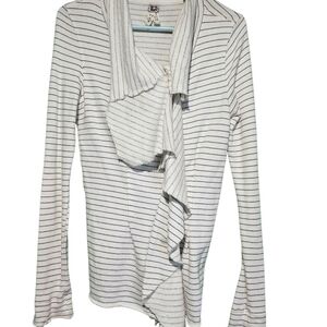 Free People We The Free Chic cream sweater jacket with elegant stripes. Features a stylish cowl neck design. Size XS (fits a small)