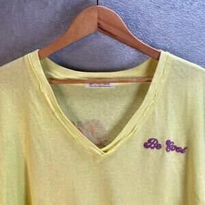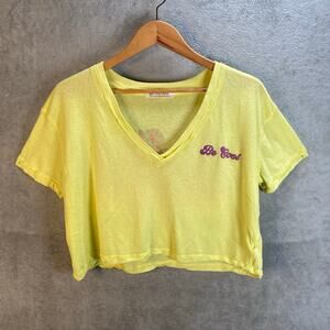 Keywords: We The Free, cropped tee, t-shirt, yellow top, short sleeve, v-neck, casual, summer, be cool, be kind, raw hem, women's fashion, trendy, comfortable