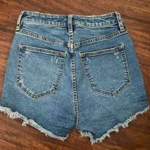 Stylish Free People Crvy jean shorts. Distressed details. Perfect amount of stretch, Frayed hem. Classic five-pocket design. Perfect condition and so flattering on!!