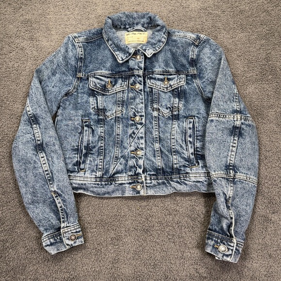 We The Free Denim Jacket Womens XS Blue Acid Wash Cropped Distressed Jean Coat