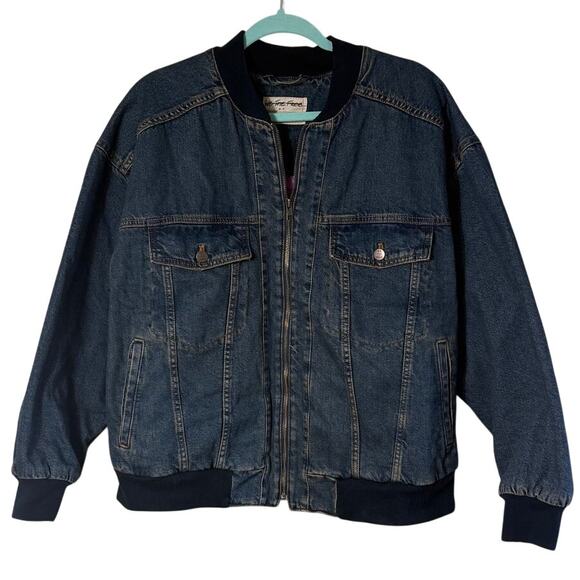We The Free Denim Stadium Jacket Bomber Indigo Blue SZ S READ FLAW