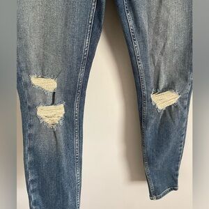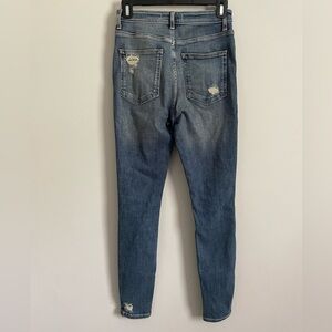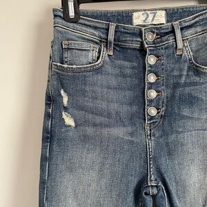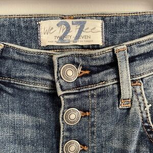 These We The Free skinny jeans by Free People are adorable. They have an exposed button fly and some great distressing. They are high rise, with the rise measuring about 11 inches. The inseam is about 27 inches, so they will probably hit at the ankle. They are in great shape and look like they’ve barely been worn.