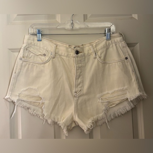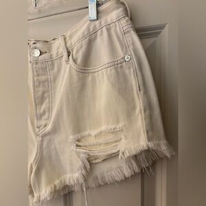 We The Free Distressed Denim Cutoff Shorts, Off White/Ivory, Size 31