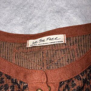 We The Free Everest Womens Brown Leopard Thermal Henley Waffle Long Sleeve XS