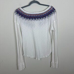 We The Free Fair isle Embroidered Henley L Winter Casual Lounge Soft Stretch