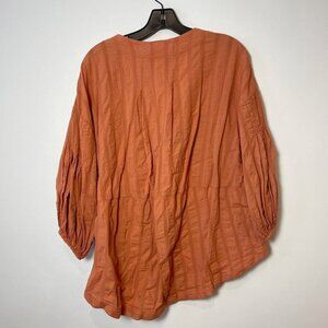 We The Free Feel It Still Wide Sleeve Blouse Rust Orange XS V-Neck Snap OB922235