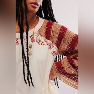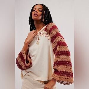 So unique from our We The Free collection, this one-of-a-kind tee is featured in a soft cotton fabrication and slouchy silhouette with contrast sleeves and printed detail.