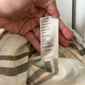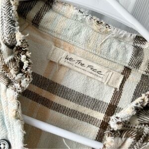 We The Free Flannel Shirt Women XS White Plaid Button Up Long Sleeve Boho