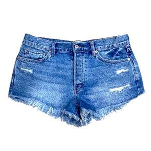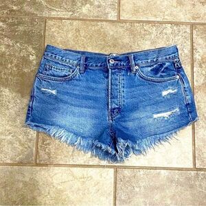 We The Free Frayed Distressed Denim Shorts Sz 27 100% Cotton 10” Rise 2” Inseam
