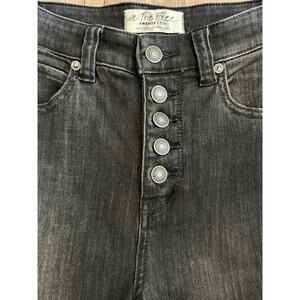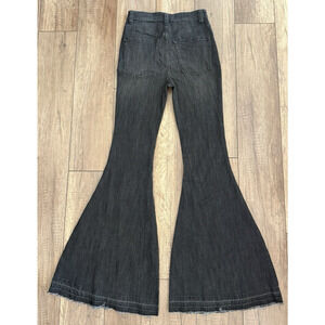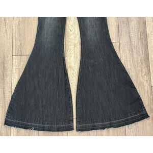 We The Free Free Bell Bottom Button Front Frayed Hem Black Denim Jeans Size 26
