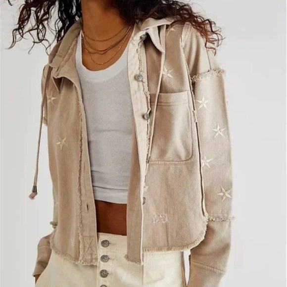 We The Free Free People Beyond the Stars Natural Tan Hooded Crop Jacket Top