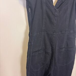 We The Free Free People Black Short Sleeve Sweetheart Neckline Denim Jumpsuit Si
