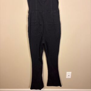 Excellent condition We The Free Free People Black Short Sleeve Sweetheart Neckline Denim Flare Bottom Jumpsuit Size Medium