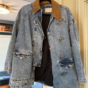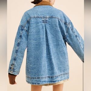 We The Free Free People Blue Denim Barn Jacket with Tan Collar