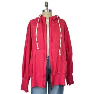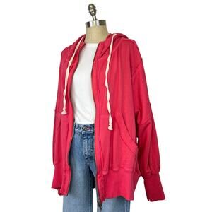 We The Free Free People Camden Oversized Full-Zip Hoodie in Red Pink (Sz M)