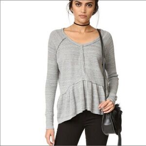 We The Free Free People Coastline Peplum Top Waffle Weave Thermal Henley Top XS