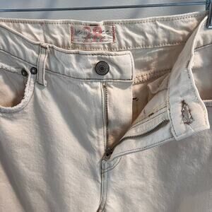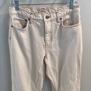 These We The Free jeans are cream in color and a size 28. They have been previously owned and are in overall good condition, but do have a few light stains which I circled in the pictures. Please review