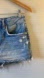 Trendy distressed jean shorts. Light blue wash. Perfect for casual wear.
