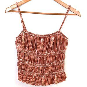 We The Free | Free People "Dolce Vita" Smocked Tank Top Brown Red | Size Small