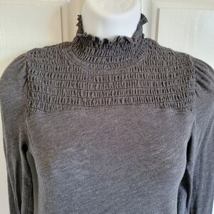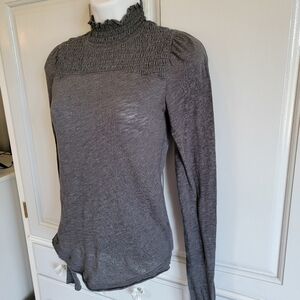 We The Free Free People Gray Long Sleeve Lightweight Ruched Ruffled Neck Top XS