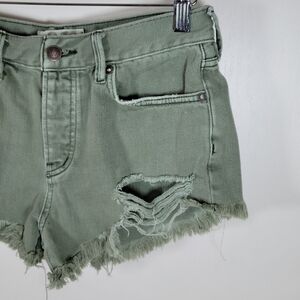 We The Free Free People Green Frayed Hem Button-Fly Cotton Shorts Size 26