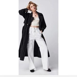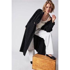 We The Free (Free People) Melia Mac Trench Coat dark navy blue & white pinstripe in size Large. Super oversized! New without retail tag (however tag w/ buttons are there and retails for $228. Absolutely stunning!