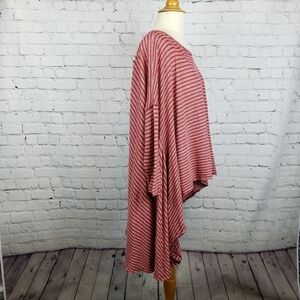 Oversized loose fit,Boho, Hi Low Hem, drop shoulders, 3/4 sleeves, raw hems, stripes, drapey, scoop neck, linen blend