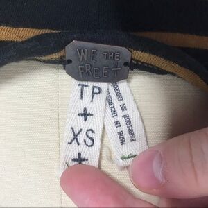 So comfy! Oversized tunic top by We The Free/Free People. Black background with tan stripes. Working side pockets! Tented back pleat. Low sides. Would look super cute in the summer with shorts and in the fall with leggings or skinny jeans. Throw on and run out the door! Will become your new go to top!
