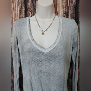 We The Free Gray V-Neck Symmetrical Women's Top Size Medium