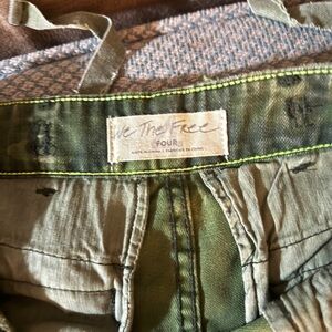Stylish cargo shorts with frayed hem. Bold camouflage design. Ideal for casual outings.