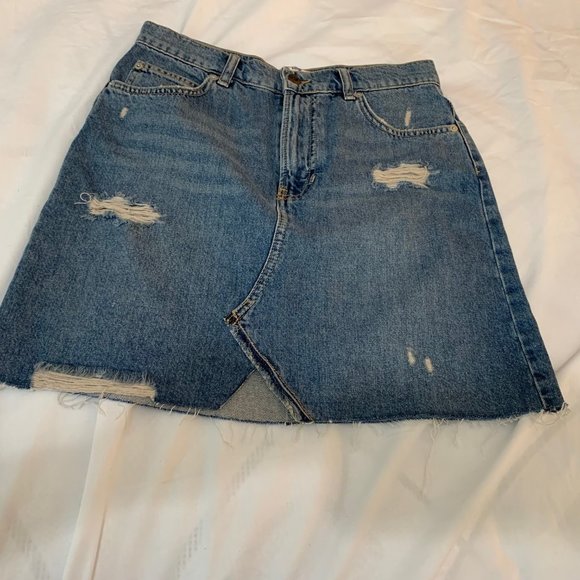 We The Free Hallie Distressed 100% Cotton Denim Mini Skirt Size 27