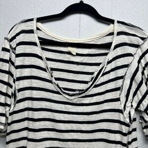We The Free women's striped top in black & white. V-neck. Drop shoulders. Short sleeves. Cropped boxy fit. Reverse seams. In good used condition. No stains, tears or holes.