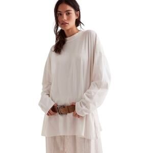 We The Free Heater Tee Optic White MEDIUM Mock Neck Oversized Cotton Casual Cozy